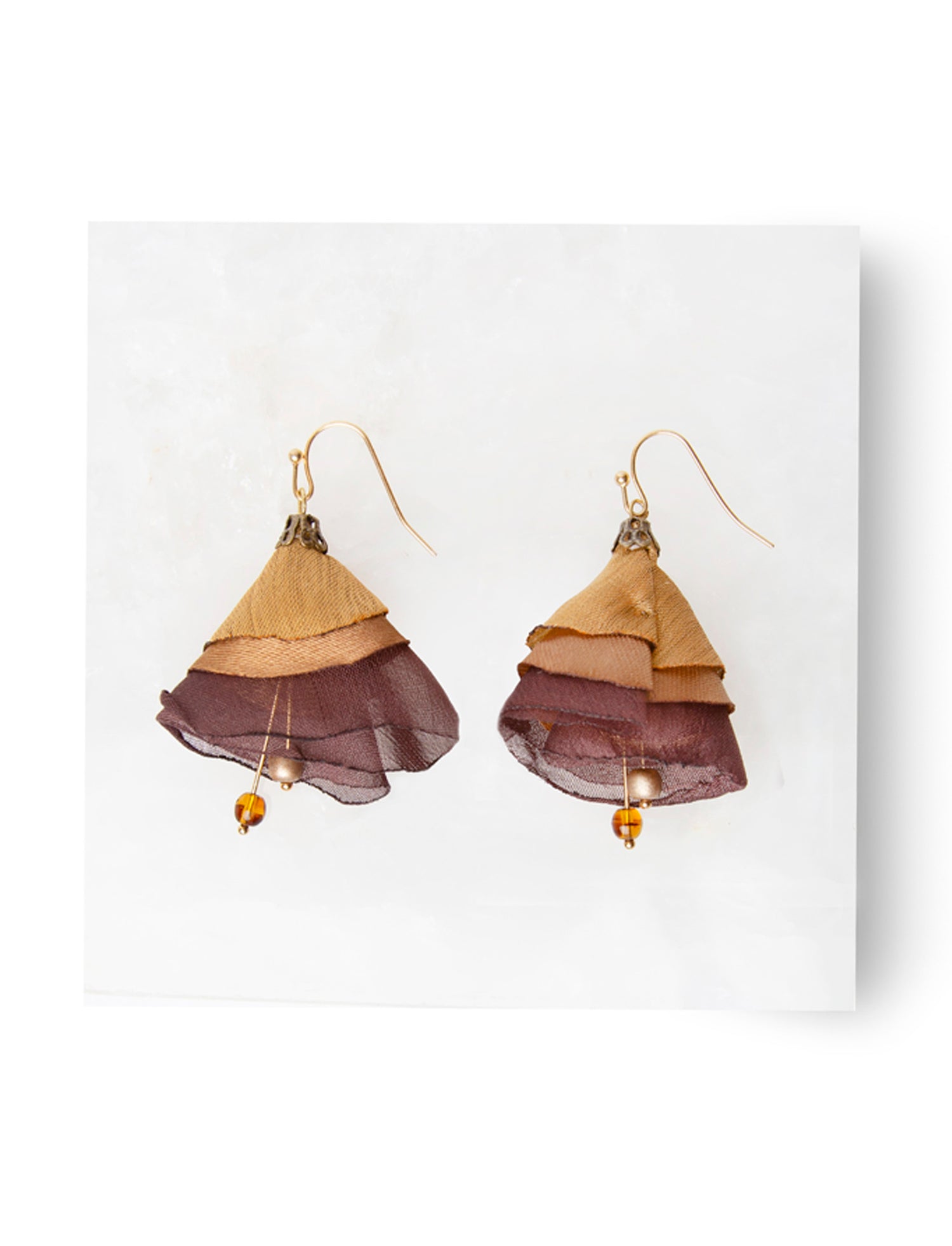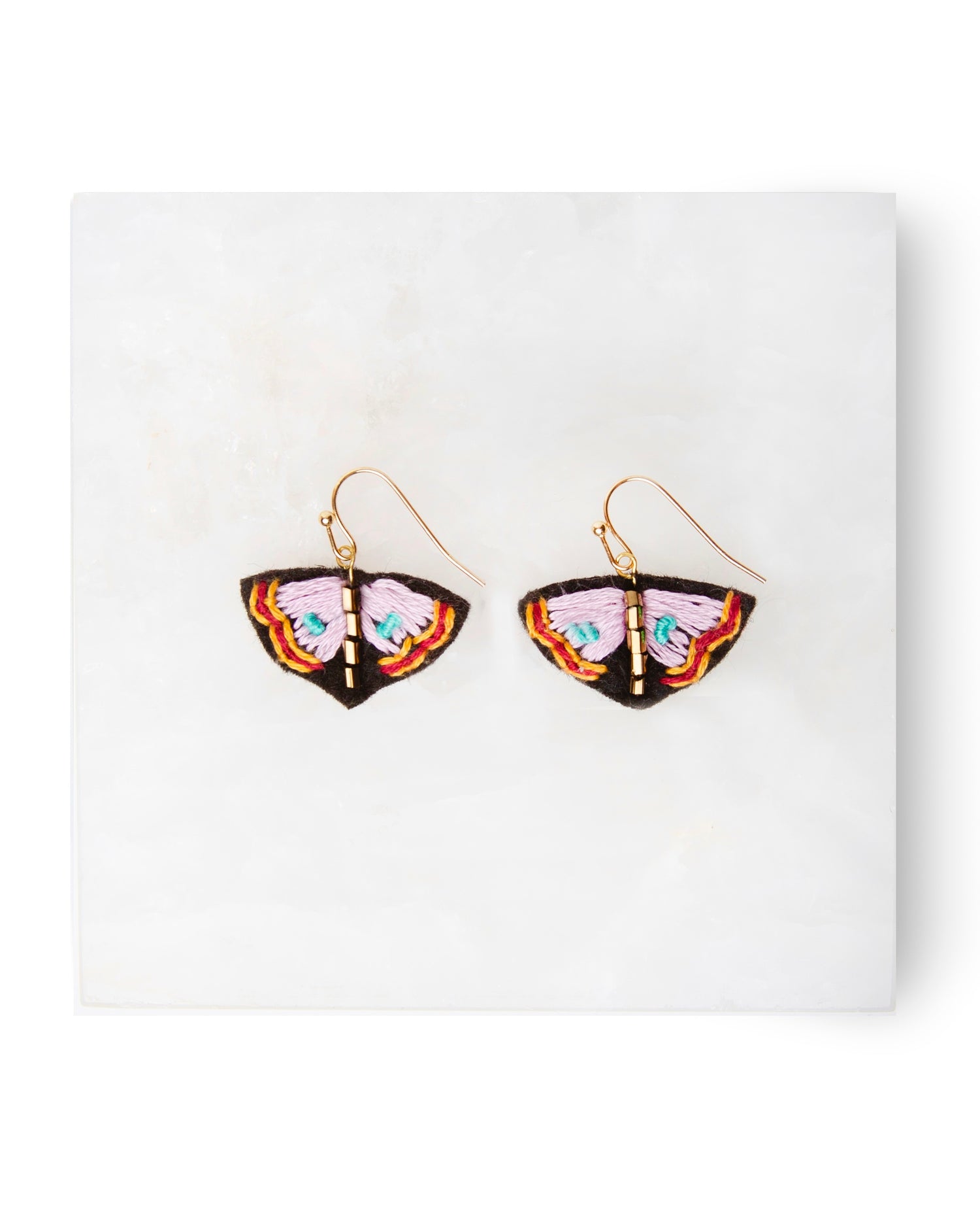 Aretes hechos a mano, joyería textil Lili Carrillo.
